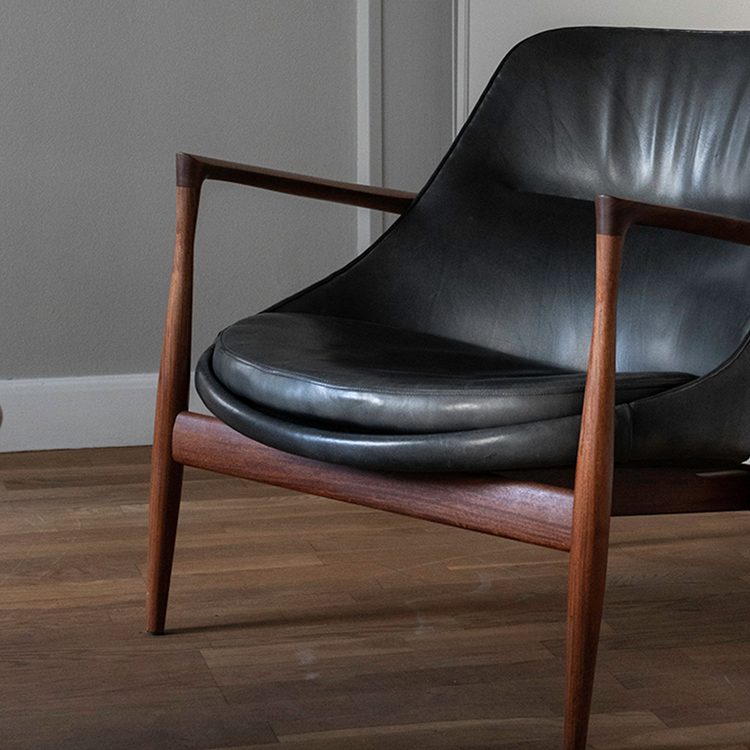 - Elizabeth Chair (U-56) (1956) – luksuriøs lænestol i læder og teak/palisander, et af hans mest kendte designs.