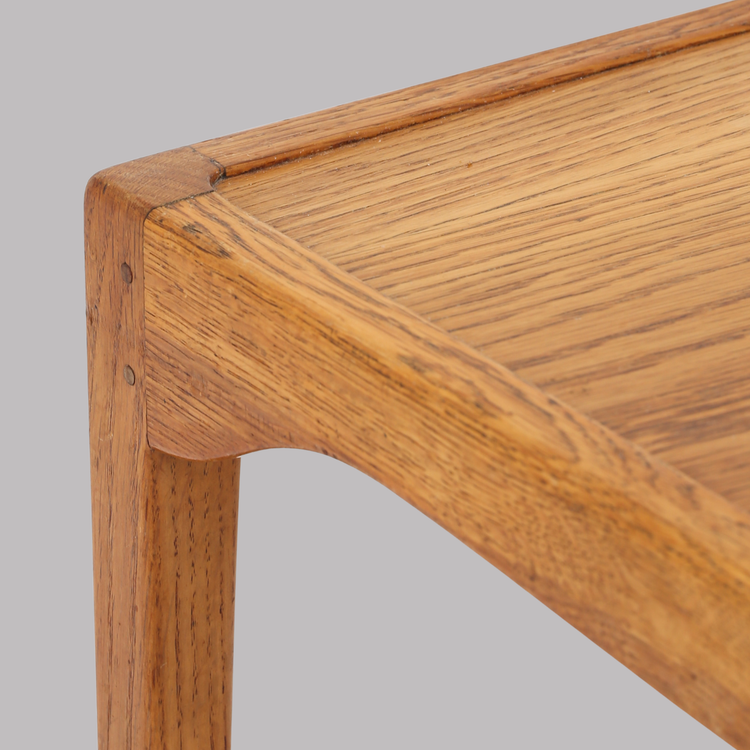 - Langt unikabord i egetræ og ahorn (1952) – skabt til en villa i Nakskov, med raffinerede samlinger og en let, elegant balance mellem de to træsorter.
